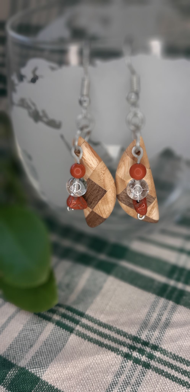 Boucles d'oreilles bois et pierres naturelles