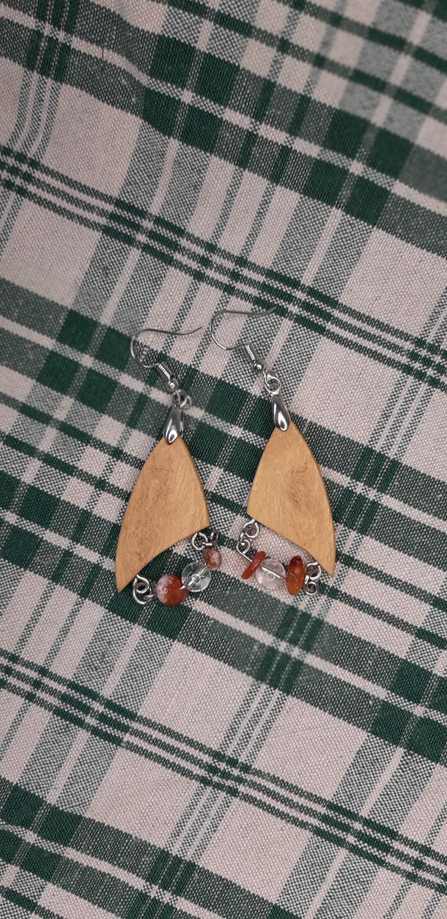 Boucles d'oreilles en bois et pierres naturelles