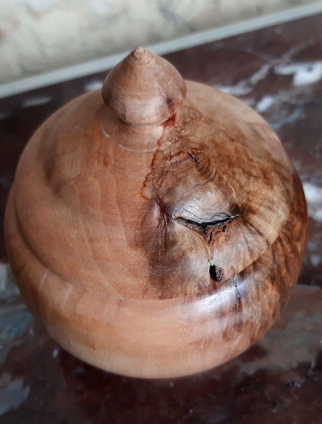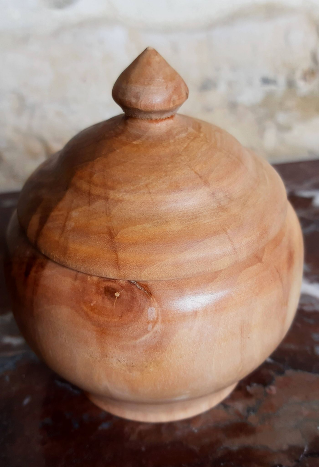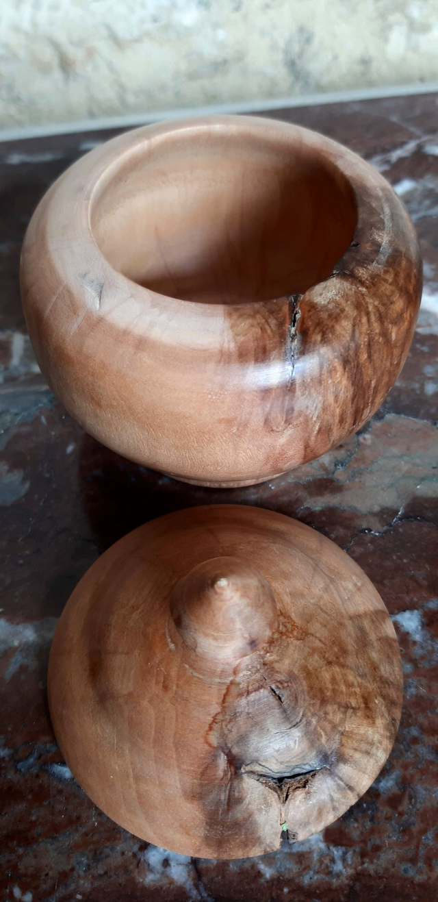 Boite toute en rondeurs pour y ranger vos bagues par exemple, elle est en saule issus de coupe saisonnière. Finition lustrée à la cire de Candelilla. Dimensions : au plus large diamètre : 6.5 cm, profondeur : 4.5 cm hauteur : 10 cm